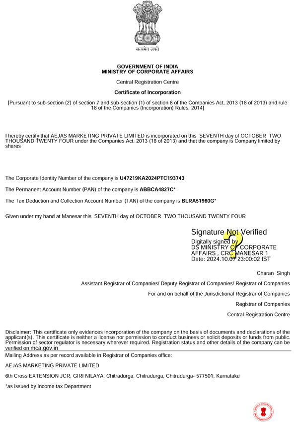 Certificate of Incorporation